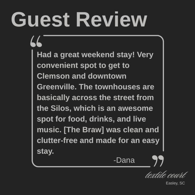 Enjoy a stylish space offering modern comfort. Perfectly placed between Greenville & Clemson. Two comfy bedrooms, 2 full baths, & a spacious great room make it perfect for couples, families, or friends. Inside: full kitchen, fast wifi, smart TV, plush linens & essential toiletries Outside: private balcony w/ seating for morn coffee or eve wine Free Private Parking! Located near Silos & Doodle Trail, this loft offers the best of vibrancy & relaxation. Book your stay before the calendar fills!