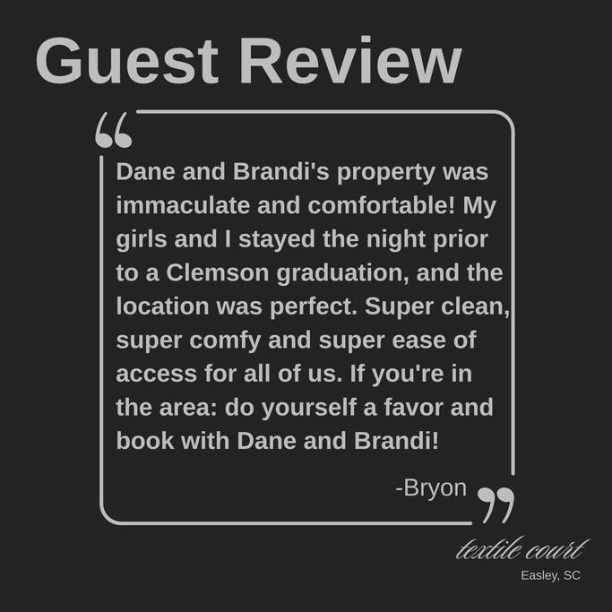 "Relaxing Loft: 3-level, 2-Bed, Balcony, Walk to Doodle Trail" ### Welcome to The Bosie: Your Urban Retreat in Easley **Perfectly Positioned** Nestled in the heart of Easley, this townhome offers the quintessential balance of convenience and tranquility. Just 18 miles from Clemson and a mere hop, skip, and jump away from the vibrant energy of Greenville, this home makes a fantastic base for exploring the local gems, such as the renowned Doodle Trail and Silos. **Chic Comfort for All** Spread across three thoughtfully designed floors, the residence comfortably accommodates up to four guests with two bedrooms and 2.5 baths. The blend of modern style and cozy touches makes it a welcoming choice for any traveler. **First Floor - A Harmonious Start** Enter to find sleek design accentuated by hardwood floors. The inviting first-bedroom features a queen-size bed, convenient closet space, ceiling fan, and easy access to a full bath. This level ensures privacy and comfort with its own designated bath facilities. **Second Floor - The Heart of the Home** As you ascend, natural light floods through six living room windows, highlighting the open-plan kitchen and living area. Culinary enthusiasts will delight in the kitchen's features, including custom wood cabinetry, a large center island, and granite countertops. A half-bath completes this level, providing added convenience for guests. **Third Floor - Your Private Sanctuary** The master suite on the top floor serves as your personal haven, boasting a king-size bed, ceiling fan, ensuite bathroom with double vanity, tiled walk-in shower, and secluded toilet space. Step onto the sizable private balcony to enjoy a tranquil morning coffee or a relaxing evening under the stars. **Effortless Living** Guests benefit from self check-in via a smart lock, assuring both security and ease of access. Parking is a breeze with access to private driveway space. **Your Ideal Gateway Awaits** Whether you're here to cheer on the Tigers, unwind after a business day, or simply soak up the local culture, this centrally located townhome caters to a myriad of needs and desires. Discover the harmonious blend of style, comfort, and location right here in Easley. **Perfect for Traveling Medical Personnel, Executives, & Sales People** With secure parking, chef's kitchen, roomy accommodations, & full size sofa, The Bosie evokes homeyness & comfortability. A superb home away from home! Contact Dane for more details about a long-term stay! NOTE: Garage is Airbnb company storage with keyed access.