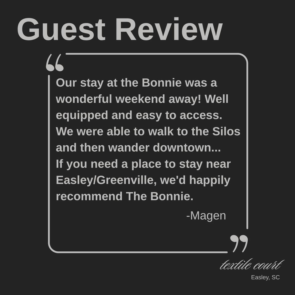 “2BR Modern Townhome with Balcony, Full Kitchen & Free Parking” ### Welcome to The Bonnie: A Dream Catcher Dwelling in Easley **A Modern Retreat** Step into ‘The Bonnie at Textile Ct,’ a modern townhome designed for relaxation and convenience. Nestled amid the vibrant tapestry of Easley, this contemporary sanctuary offers a respite from the bustling city life while keeping you connected to the energy of nearby Greenville and Clemson. **Prime Location** - **Proximity**- Only 13 miles from the cultural atmosphere of Downtown Greenville and 18 miles to the spirited campus of Clemson University, The Bonnie is perfectly placed. - **Local Attractions**- Just blocks away from The Silos and the scenic Doodle Trail, this lovely space provides opportunities for both exploration and enjoyment. **Stylish and Spacious Living** This three-tier townhome elegantly balances privacy and communal living spaces, offering: - **First Floor**- A cozy bedroom with a queen bed, chic decor, and personal storage, perfect for unwinding after your journeys. - **Second Floor**- Open concept living with a gourmet kitchen boasting high-end finishes. Enjoy preparing meals with commercial-style appliances and savor them around a contemporary dining table. Relax in the bright living area with abundant natural light. - **Third Floor Master Suite**- A private retreat featuring a king-size bed, en-suite bathroom with double vanity, and a private balcony to enjoy the start or end of your day. **Designed for Comfort and Convenience** - **Amenities**- Home to thoughtful touches like sleek hardwood flooring, custom wood details, and an abundance of natural light that enhances its sophisticated vibe. - **Technology & Entertainment**- Stay connected with high-speed WiFi, enjoy cinematic experiences on a smart TV, or dive into a good book. - **Outdoor Space**- A private patio invites you to bask in the sun or enjoy a coffee or tea with outdoor seating options. **Seamless Stay** - **Parking**- Convenient private driveway or a spacious one-car garage ensures easy access. - **Security and Safety**- Equipped with exterior security camera and all essential safety features for peace of mind during your stay. **Explore and Relax** Whether your itinerary includes exploring the charming local shops and eateries on Main Street or venturing further afield for outdoor adventures, our location and amenities cater to a variety of interests. Return to your townhome for restful nights and refreshing mornings, setting the tone for a memorable visit in Easley. Experience the essence of modern living at 'The Bonnie of Textile Ct'—where every detail is curated to offer comfort, convenience, and a touch of indulgence.